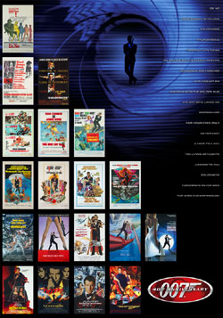 Die Filme Dr. No (1962) From Russia With Love (1963) Goldfinger (1964) Thunderball (1965) You Only Live Twice (1967) On Her Majesty's Secret Service (1969) Diamonds Are Forever (1971) Live And Let Die (1973) The Man With The Golden Gun (1974) The Spy Who Loved Me (1977) Moonraker (1979) For Your Eyes Only (1981) Octupussy (1983) A View To Kill (1985) The Living Daylights (1987) Licence To Kill (1989) Goldeneye (1995) Tomorrow Never Dies (1997) The World Is Not Enough (1999) Die Another Day (2002)