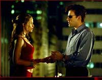 Dank des Erfolgs der Comicverfilmungen X-Men und Spiderman suchte Hollywood in dem Archiv des Comicimperiums Marvel und kramte das Comic Daredevil hervor. Darin geht es um einen blinden Mann, der mit seinen übermenschlich ausgeprägten Sinnen nachts durch die Straßen New Yorks zieht, um für Recht und Ordnung zu sorgen. Am Tag ist er der idealistische Anwalt Matt Murdock, der nur die Fälle unschuldiger, aber gleichzeitig unlukrativer, Klienten annimmt. Gespielt wird Dare Devil von Ben Affleck, dem es gut gelingt, die beiden unterschiedlichen Ausprägungen seiner Figur auf die Leinwand zu bringen. Einerseits wirkt es als blinder Anwalt nicht hilflos, aber irgendwie verwundbar und andererseits zieht er des als breitschultriger Superheld durch die Straßen der Nacht.